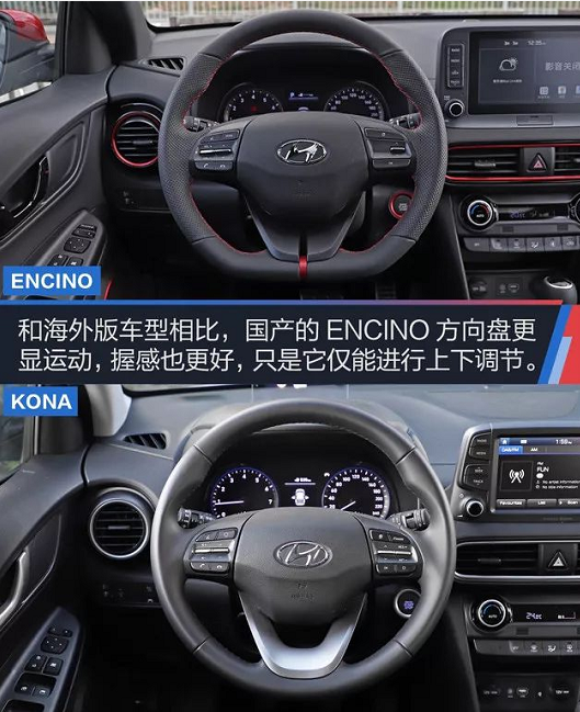北京現代ENCINO的外觀讓人驚艷,簡潔設計的內飾也沒有太多復雜的線條元素或者造型,新車僅通過雙色裝飾來調節(jié)車內氛圍。相對于海外版車型,國產的ENCINO更將該車的性能外顯,運動型方向盤就是最好的窗口。