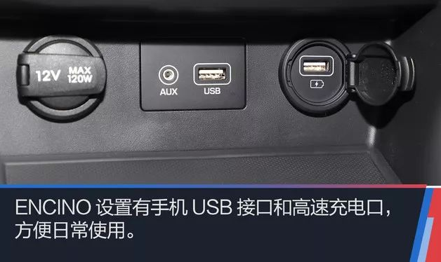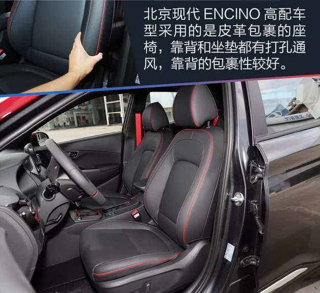 和海外版車型不同的是,ENCINO高配車型采用皮革包裹而非皮革+織布的材質,座椅靠背包裹性做得比同級別小型SUV要好一些。例如,紅色縫線,紅色安全帶,仿碳纖維紋路的座椅皮革裝飾等都在給車內營造運動的氛圍。