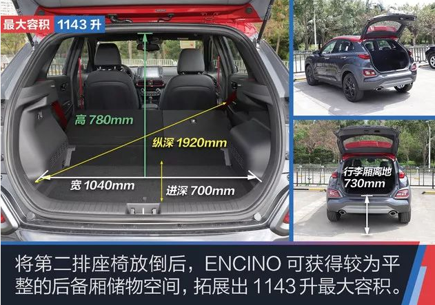 ENCINO和本家兄弟ix25對比來看,ix25還要大一圈,但是ix25側重的是家用而非追求性能,因此車身尺寸沒ENCINO那么緊致。