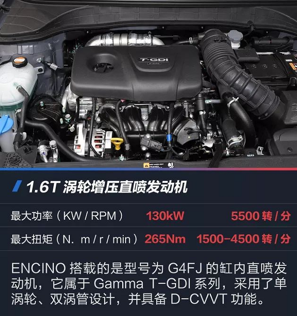ENCINO是北京現代首款高性能車,定位為高性能時尚酷跑SUV。新車全系標配1.6T發(fā)動機+7DCT干式雙離合變速器,最大輸出功率130千瓦,官方介紹其百公里加速時間可在8秒內完成。