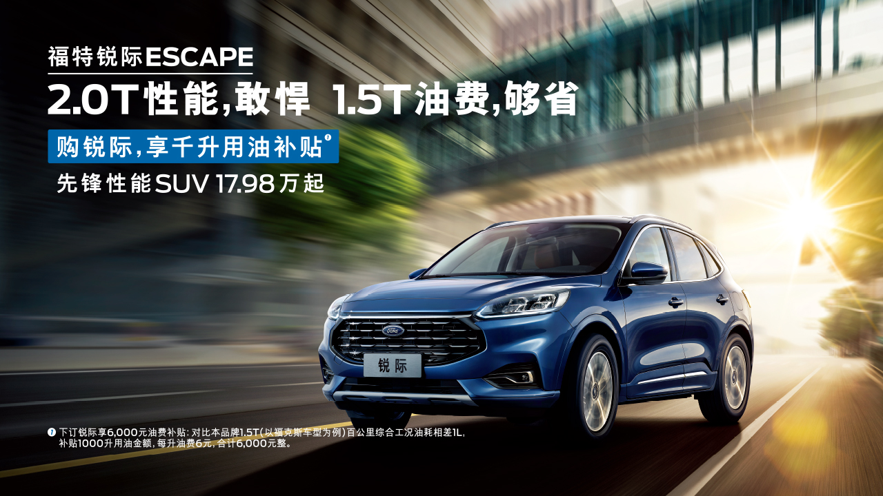 福特銳際17.98萬起,7月購(gòu)車可享千升用油補(bǔ)貼①,另享多重夏日驚喜禮: