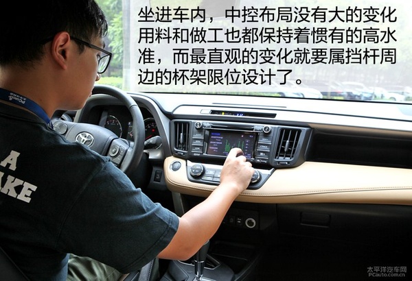 坐進(jìn)車內(nèi),一切都是那么的熟悉,沒(méi)有大的布局改變,很多設(shè)計(jì)都是那么巧妙、順手,這是張先生對(duì)于RAV4榮放的高度評(píng)價(jià)。中控面板當(dāng)中的皮革包裹在老款車型當(dāng)中就有所裝配,提升了整車質(zhì)感,觸感也很舒適,這是家人都很喜歡和推崇的配置。
