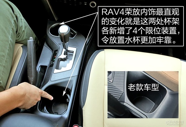 拋開(kāi)配置差異帶來(lái)的不同,新款RAV4榮放在前排杯架的處理上更加用心,兩處杯架各新增了限位裝置,放置高位的水瓶或是比較細(xì)的水瓶都變得更加牢靠,同時(shí)也降低異響發(fā)生的可能。