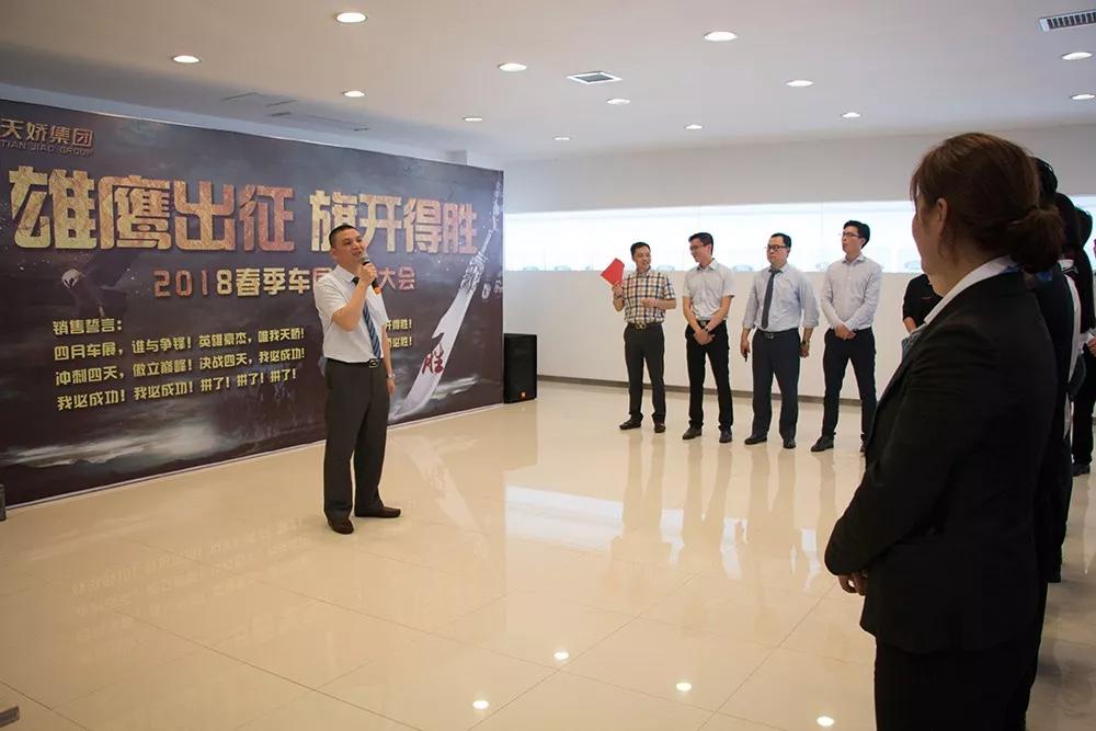 2018邵陽春季車展即將拉開帷幕,為了打好2018年車展第一仗,激發(fā)員工的斗志,4月12日,集團旗下6大品牌、8家汽車4S店全體營銷管理團隊,在集團謝總的帶領下,在會議室舉行了盛大的車展啟動儀式。
