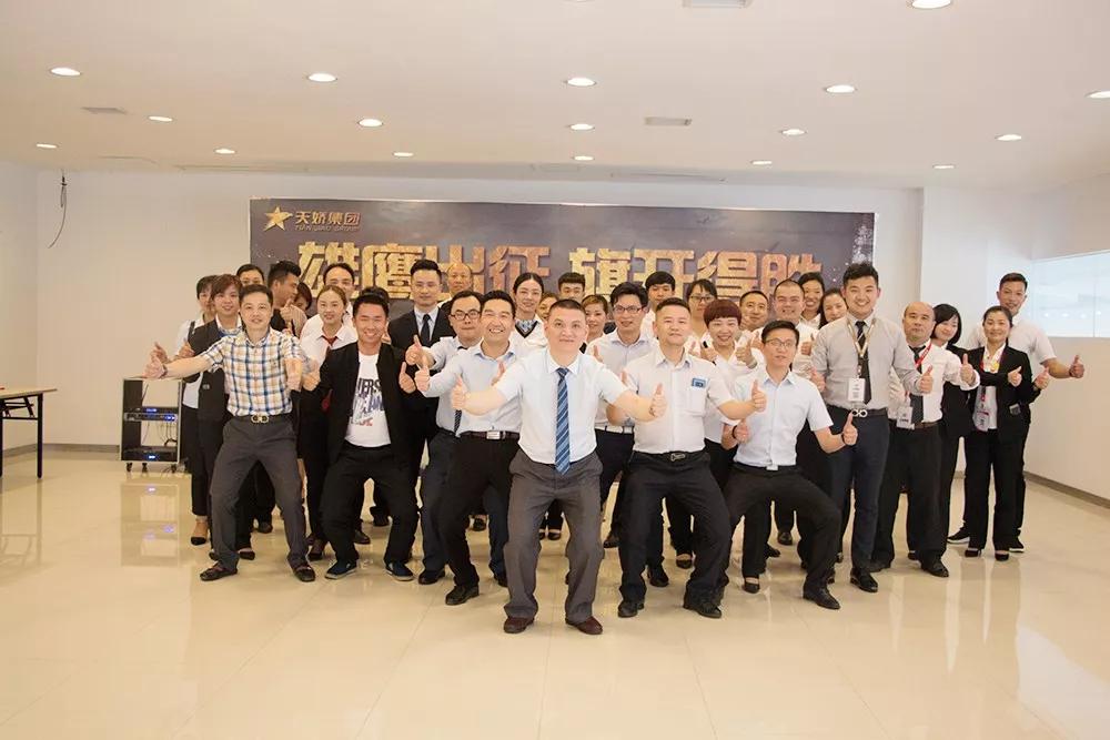 天嬌加油!天嬌必勝!同時要求全體團隊必須做到“人人堅定信心、認定目標、不忘誓詞、迎難而上;個個奮勇殺單、血拼到底,一展天嬌鷹姿!”