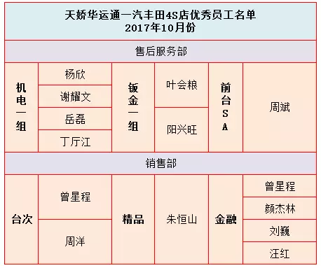 “不再猶豫,不再徘徊,勇往直前!”——天嬌華運(yùn)通一汽豐田4S店領(lǐng)導(dǎo)以及全體員工參加了本次2017年10月份優(yōu)秀表彰大會(huì)。