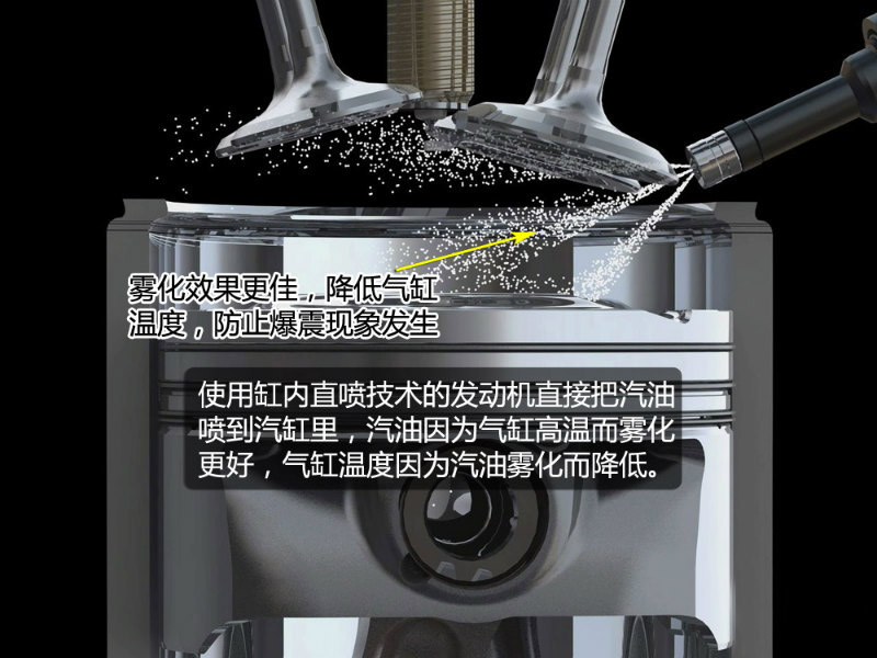 在過去的燃油噴射系統(tǒng)中,噴油嘴在進氣歧管中噴射汽油,汽油與空氣混合后再進入氣缸。這種傳統(tǒng)的汽油噴射方式使得汽油接觸到進氣歧管表面形成汽油壁膜,造成壁膜損失,增加油耗。而缸內(nèi)直噴系統(tǒng)的噴嘴直接往氣缸內(nèi)噴射汽油,壁膜損失大大降低,從而提升燃油使用效率。