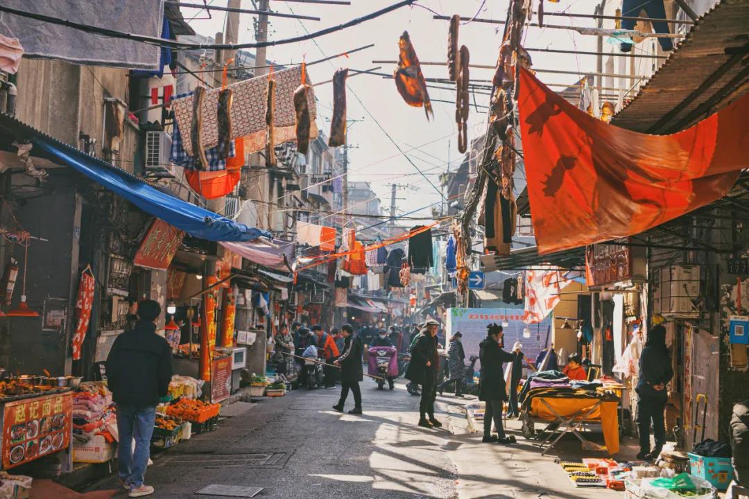 穿過糧道街,來到了江城文藝青年最喜歡打卡的地方,曇華林。慵懶的小貓,閑適的奶奶,老人們在門口一坐就是一下午,看著人來人往,眼神里充滿的都是歲月和故事。年味的余韻就體現(xiàn)在這條街道濃濃的歲月感當中。