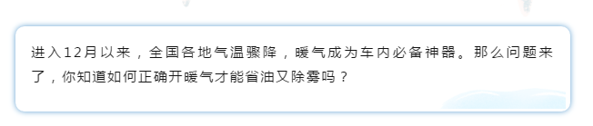 北方車友只需打開外循環(huán),出風(fēng)方式調(diào)到吹向擋風(fēng)玻璃,1-2分鐘即可除去霧氣。