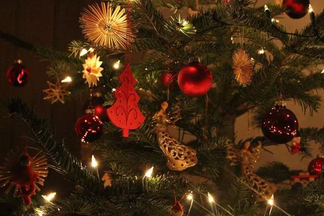 是圣誕節(jié)慶祝中最有名的傳統(tǒng)之一。通常人們?cè)谑フQ前后把一棵常綠植物如松樹(shù)弄進(jìn)屋里或者在戶外,并用圣誕燈和彩色的裝飾物裝飾。并把一個(gè)天使或星星放在樹(shù)的頂上。
