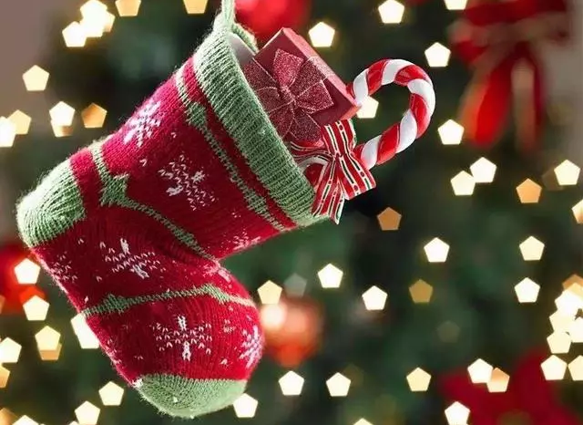 最早以前是一對(duì)紅色的大襪子,大小不拘。因?yàn)槭フQ襪是要用來(lái)裝禮物的,所以是小朋友最喜歡的東西,晚上他們會(huì)將自己的襪子掛在床邊,等待第二天早上收禮。